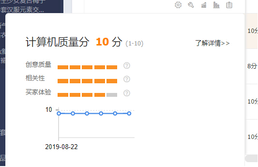 因为衡量质量分的重要标准之一就是创意质量!所以这里你就可以看出来图是很重要的,图点击率低,质量分就上不去,由此点击单价就高 这时候你的投产比就上不去啦,是环环相扣的一个存在!