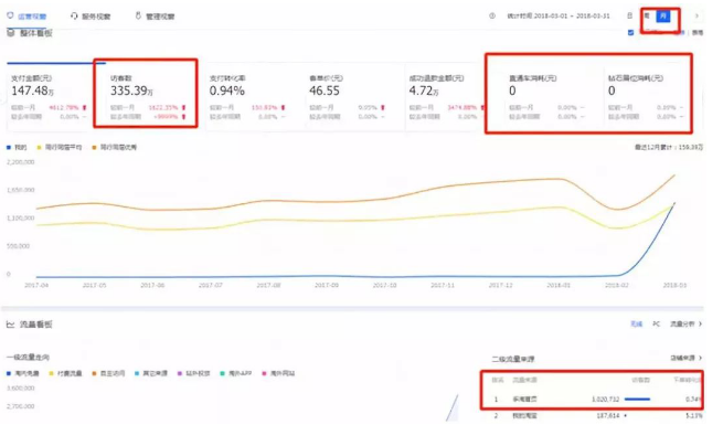 至于最后一张主图---白底图,这张主图只要把自己的产品的整体平铺图或者挂拍图体现出来即可,因为白底图,不需要有什么背景,只要你扣个图即可,可以帮助增加手淘首页流量的机会。就像下面的这位卖家,按照这样一套方法操作下来以后,我们可以看一下人家的的访客,如下图4,